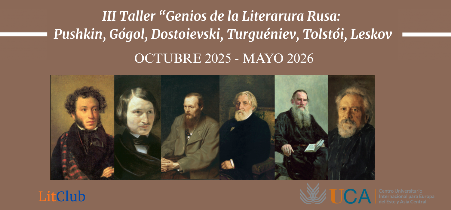 III Taller “Genios de la Literatura Rusa” | actividad | 08/10/2025 | 20 octubre 2025 - 31 mayo 2026 | Este año académico 2025/26, recuperamos la actividad de nuestro tradicional Club Literario (LitClub) y el CUNEAC y la Biblioteca Pushkin... |