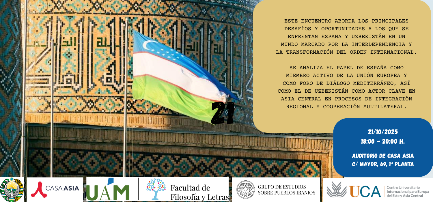 Mesa redonda: “España y Uzbekistán ante los retos del multilateralismo y la estabilidad regional” | evento | 02/10/2025 | 21 octubre 2025 | Este encuentro aborda los principales desafíos y oportunidades a los que se enfrentan España y Uzbekistán en un mundo marcado... |