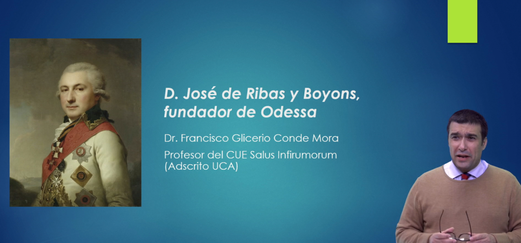 Estreno en directo (12:00 h.) en nuestro Canal de Youtube de la conferencia “D. José de Ribas y Boyons, fundador de Odesa”, impartida por el Prof. Dr. D. Francisco Glicerio Conde Mora, docente de Salus Infirmorum, Centro Adscrito a la Universidad de Cádiz.