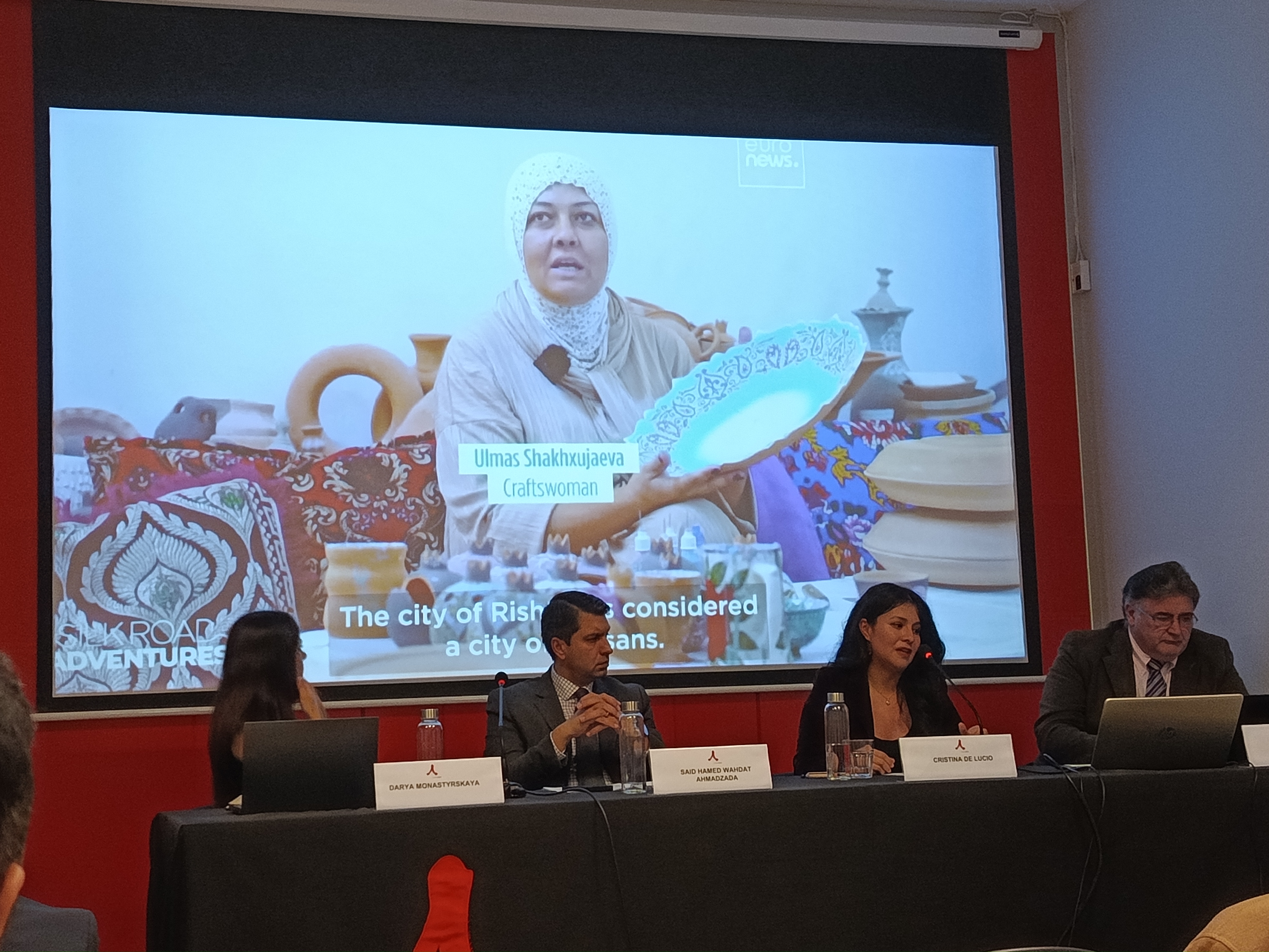 Наконец, Кристина де Лусио Атональ (UAM) рассмотрела культурную дипломатию Узбекистана с гендерной точки зрения, подчеркнув роль женщин-ремесленниц в сохранении культурного наследия и все еще существующие проблемы в области равенства и профессиональной видимости.