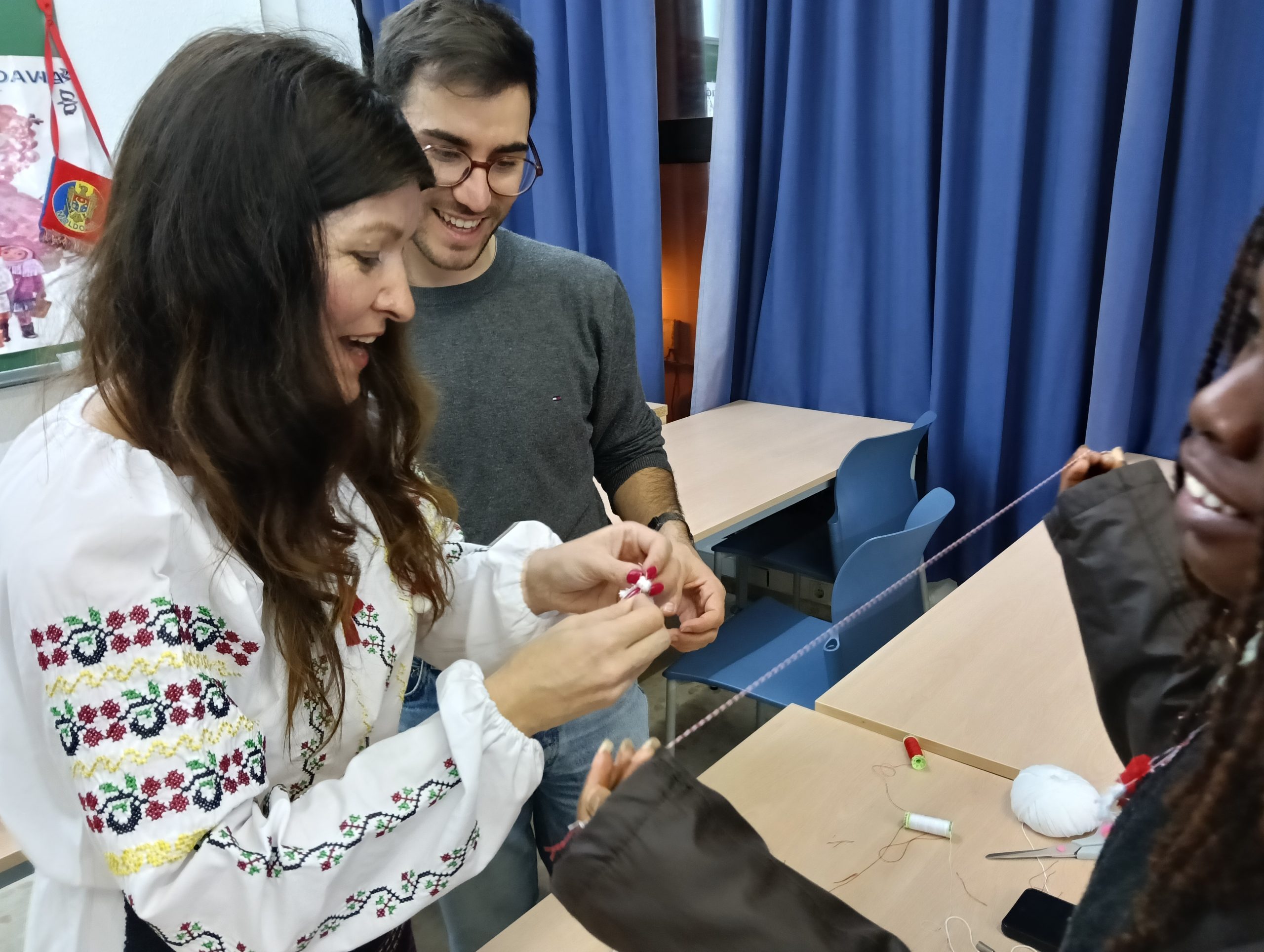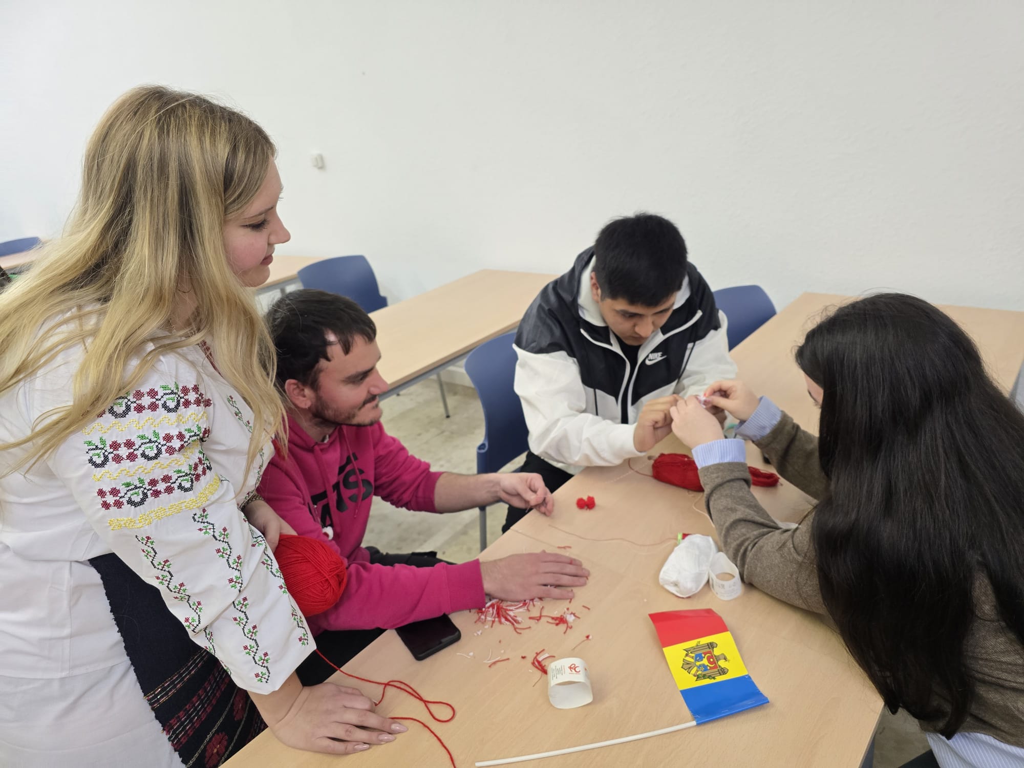 Los asistentes no sólo recibieron información muy interesante sobre Moldavia, sino que pudieron hacerse y llevarse de recuerdo su propio Martisor, lazo blanco y rojo que se hace con hilos y lanas. Según la tradición moldava, ahora lo deberán portar a diario hasta final de mes, cuando podrán colgarlo en aquel árbol o planta que deseen que resulte más fructífero.